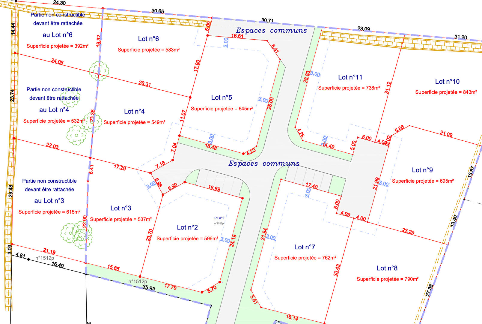 Les terrains disponibles vont de 596 m2 à 1152 m2.