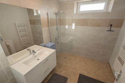 Pour le couchage, une première chambre donne directement sur le séjour. Celle -ci est actuellement utilisée en complément du salon qui sert de salle à manger. On accède au deux autres par un dégagement qui délimite la zone nuit et permet également d'accéder à une sympathique salle d'eau avec une grande douche italienne !!